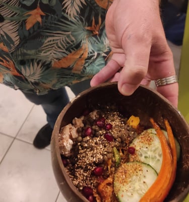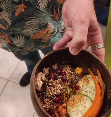 Après une courte présentation accompagnée d'un apéritif maison, nous avons déguster un kichari (plat traditionnel ayurvédique).