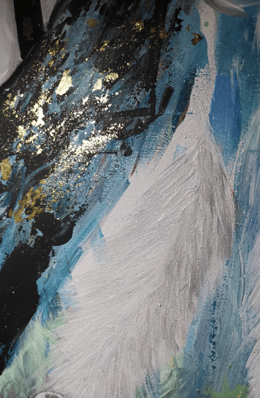 Tableau avec des paillettes, feuilles d'Or