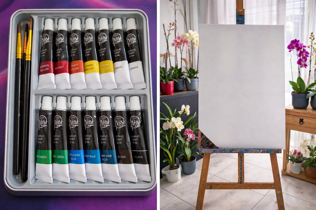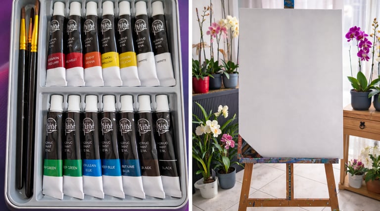 Comprend : toile, pinceaux, peintures.